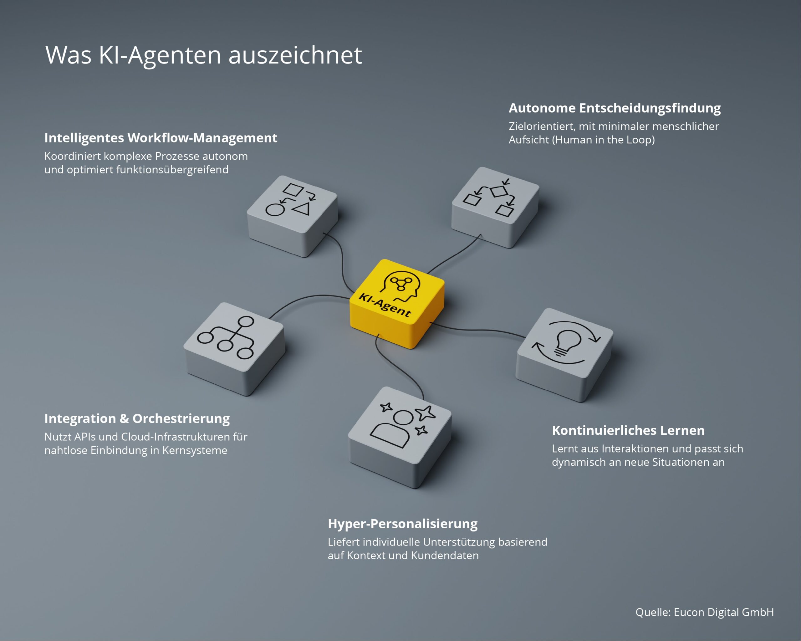 • Compliance und Nachvollziehbarkeit: Moderne KI-Agenten lassen sich so gestalten, dass ihre Entscheidungen dokumentiert und nachvollziehbar sind – ein entscheidender Aspekt im Kontext des EU AI Acts